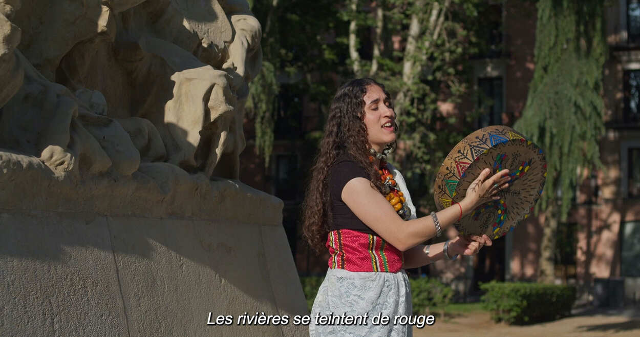 Alors que le film transpose la mémoire d’événements historiques du nord du Maroc à l’actualité de la capitale espagnole, nous suivons Fátima, Huda, Ikram et Ibrahim qui performent dans les rues du quartier de Tetuán, devant un monument ou dans un parking souterrain.