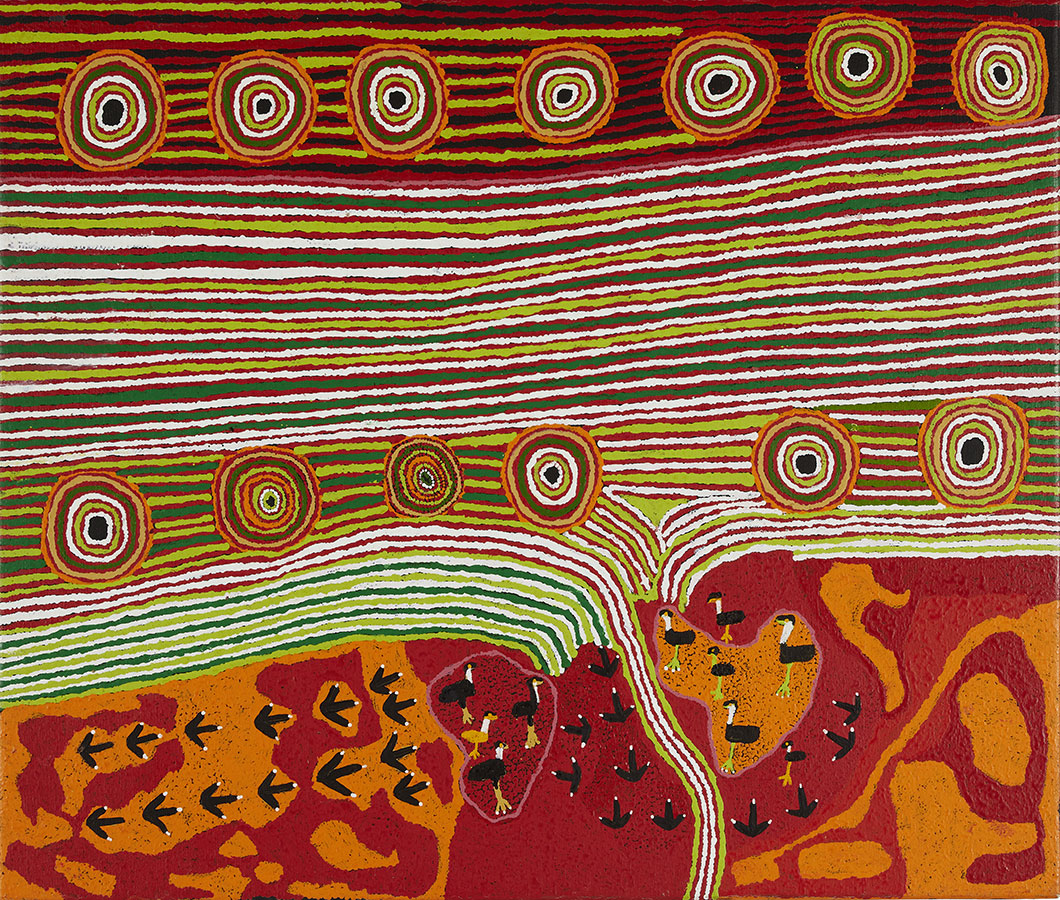 Grâce à une sélection d’œuvres provenant de différentes régions, cette exposition rappelle que le continent aujourd’hui nommé Australie n’a jamais constitué un pays unique. Avant la colonisation, il se composait d’environ 250 communautés distinctes, chacune dotée de ses propres langues, lois, traditions et histoires. Ces différences se reflètent dans la grande diversité régionale de l’art aborigène – des œuvres abstraites et vibrantes des déserts occidentaux et centraux aux traditions anciennes de peinture sur écorce de l’Arnhem Land.