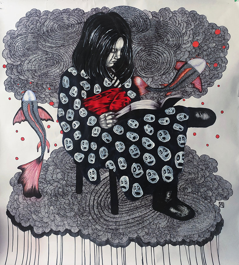 À travers les différents supports et techniques issus du travail de la peinture, de la laque, de la linogravure ou du dessin d’illustration, les créations d’Aurélia Gritte prennent source aussi bien dans les courants asiatiques que dans l’art contemporain.