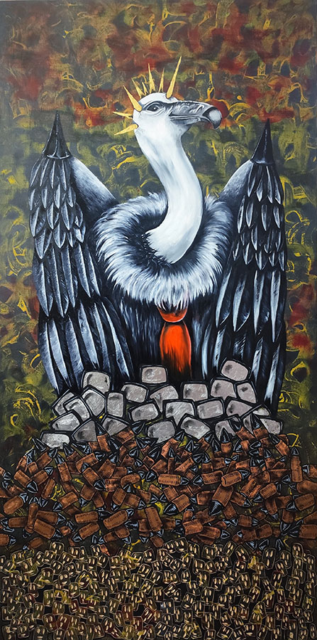 À la fois témoins et victimes des dérives de notre temps, la multitude de petits personnages fantomatiques qui s’introduisent subrepticement dans ses images figure la horde pacifique des invisibles habitant notre présent et le monde qu’il contient en germe.