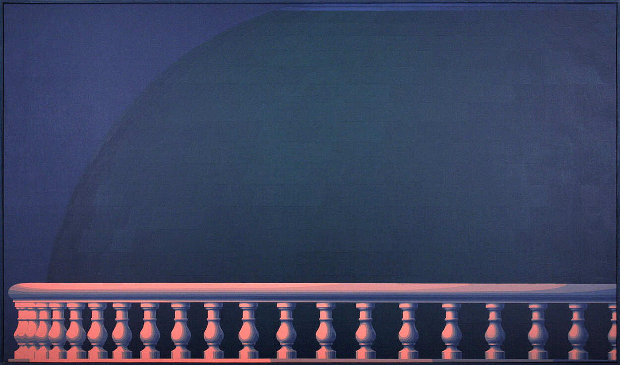 Un dispositif lumineux lui permet tout de même d’assister lors de la tombée du jour à un événement plus directement performatif. Les toiles présentées sont issues de la série Dômes, qui occupa Christian Baboulène de 1976 à 1980.