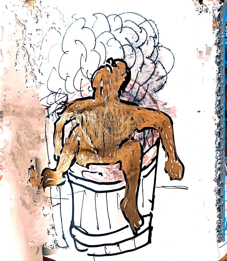 Dessins techniques mixtes sur papier (Benxamín) et collages sur d’anciennes affiches scientifiques (Xesco) composent cette exposition. Deux approches différentes mais complémentaires, à l’image des ingrédients d’un bon cocktail et d’une amitié durable.