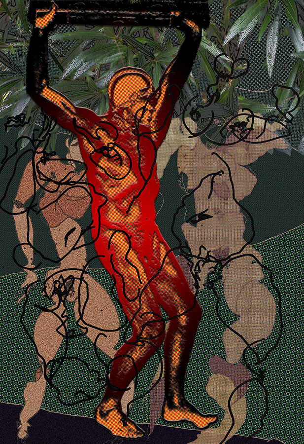 La mythologie traverse également son œuvre à travers des séries telles que Les Géantes, Les Atlantes ou Les Apsaras. Ces figures monumentales et archétypales célèbrent la puissance du corps et l’énergie vitale du mouvement. Elles incarnent, selon les mots de l’artiste, « une mémoire universelle du corps, à la fois individuelle et collective ». En convoquant ces présences intemporelles, il relie l’expérience intime du dessin à une dimension symbolique et archaïque : le corps devient territoire du mythe, surface où se rejouent les récits de l’humanité.