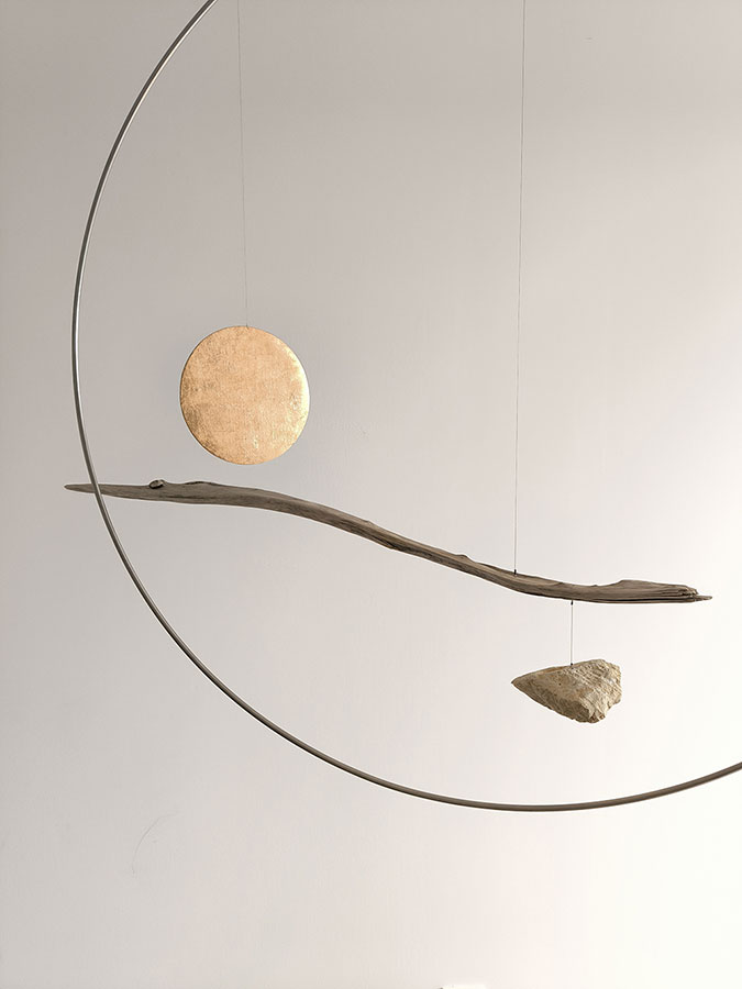 Pauline EFFANTIN porte en équilibre vulnérable des fragments singuliers de bois flottés, tels des traits de pinceaux posés par le Vivant. Elle ouvre ainsi des espaces poétiques et contemplatifs ; sculptures mobiles nous invitant à faire l’expérience intime du souffle et de la plénitude du vide, où tout peut à nouveau advenir.