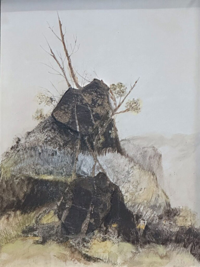 Création d’un paysage à partir de l’insertion d’une (ou plusieurs) pierres réelles.