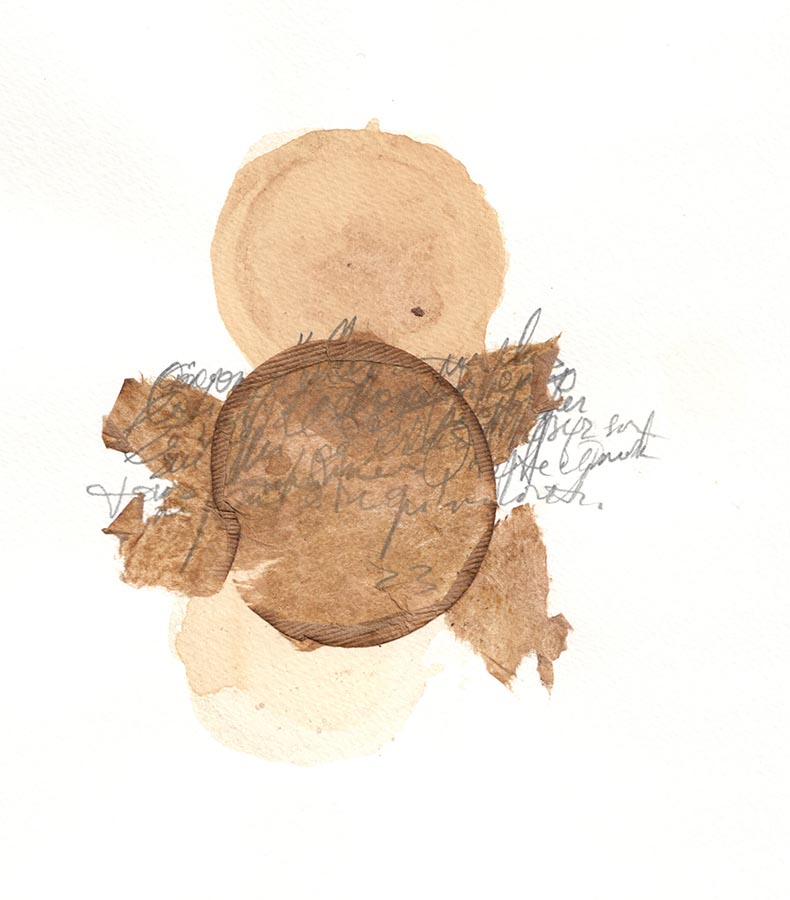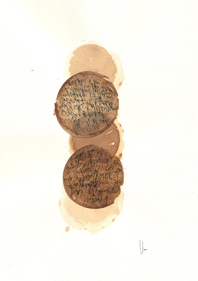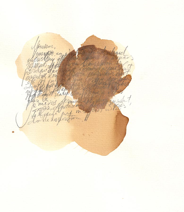 Pas à la graisse de canard mais aux sachets de thé. L’appartement où j’habite n’est pas le mien, je ne possède pas non plus les livres présents dans la bibliothèque. Je trouve Levée d’écrou de Luca et j’intègre des fragments dans les mini-minimalistes dessins que je fais avec des sachets de thé. Heureux mariage entre sachet-enveloppe et lettres écrites à personne… Insoutenable légèreté à fleur de peau. Délicat. Délicatement. Les lettres à un certain Monsieur inconnu – Luca a eu la fleur de ma peau.