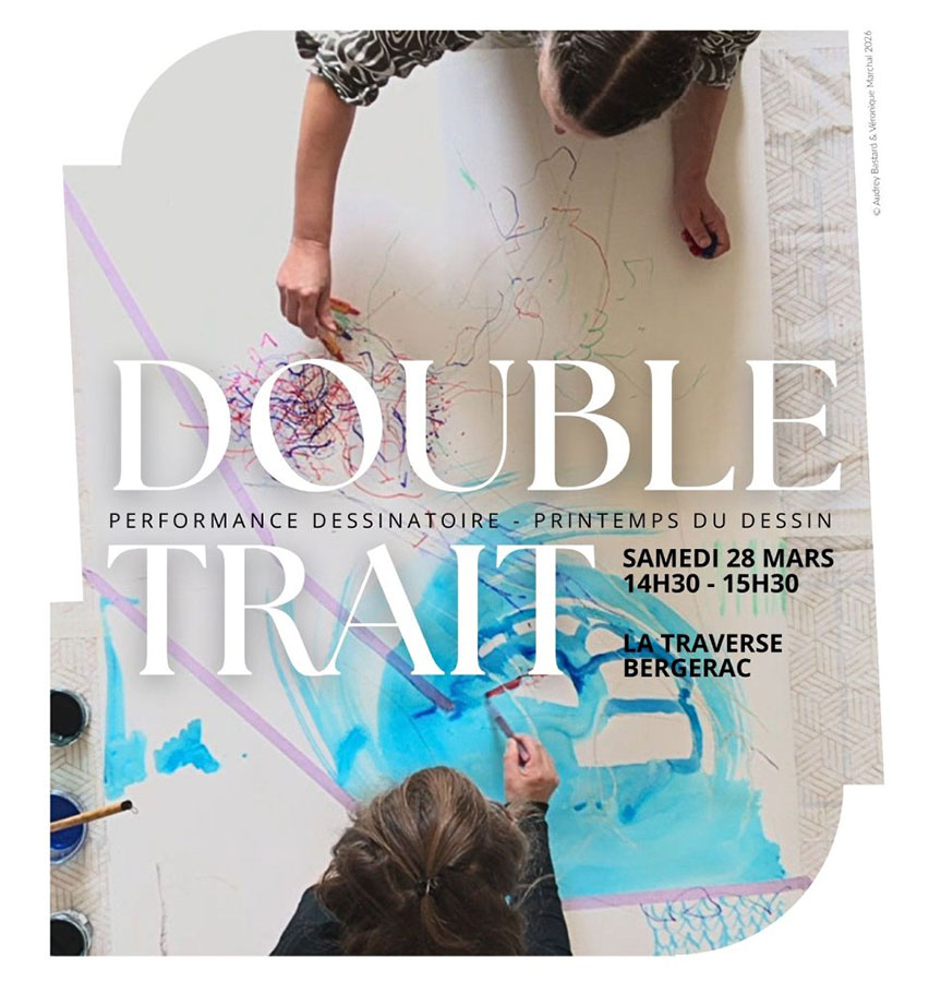 Dans le cadre du Printemps du Dessin 2026, La Traverse accueille Double trait, une performance dessinatoire imaginée par les plasticiennes Audrey Bastard et Véronique Marchal, en partenariat avec le Centre Hospitalier Vauclaire.