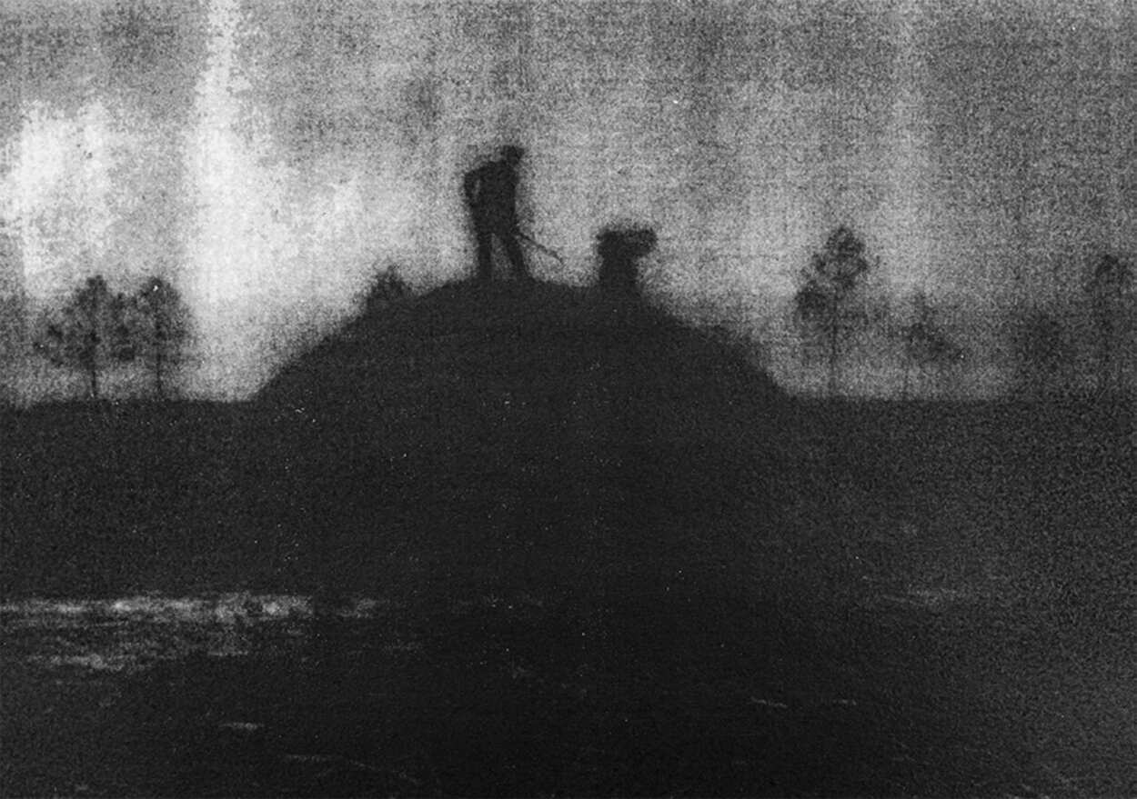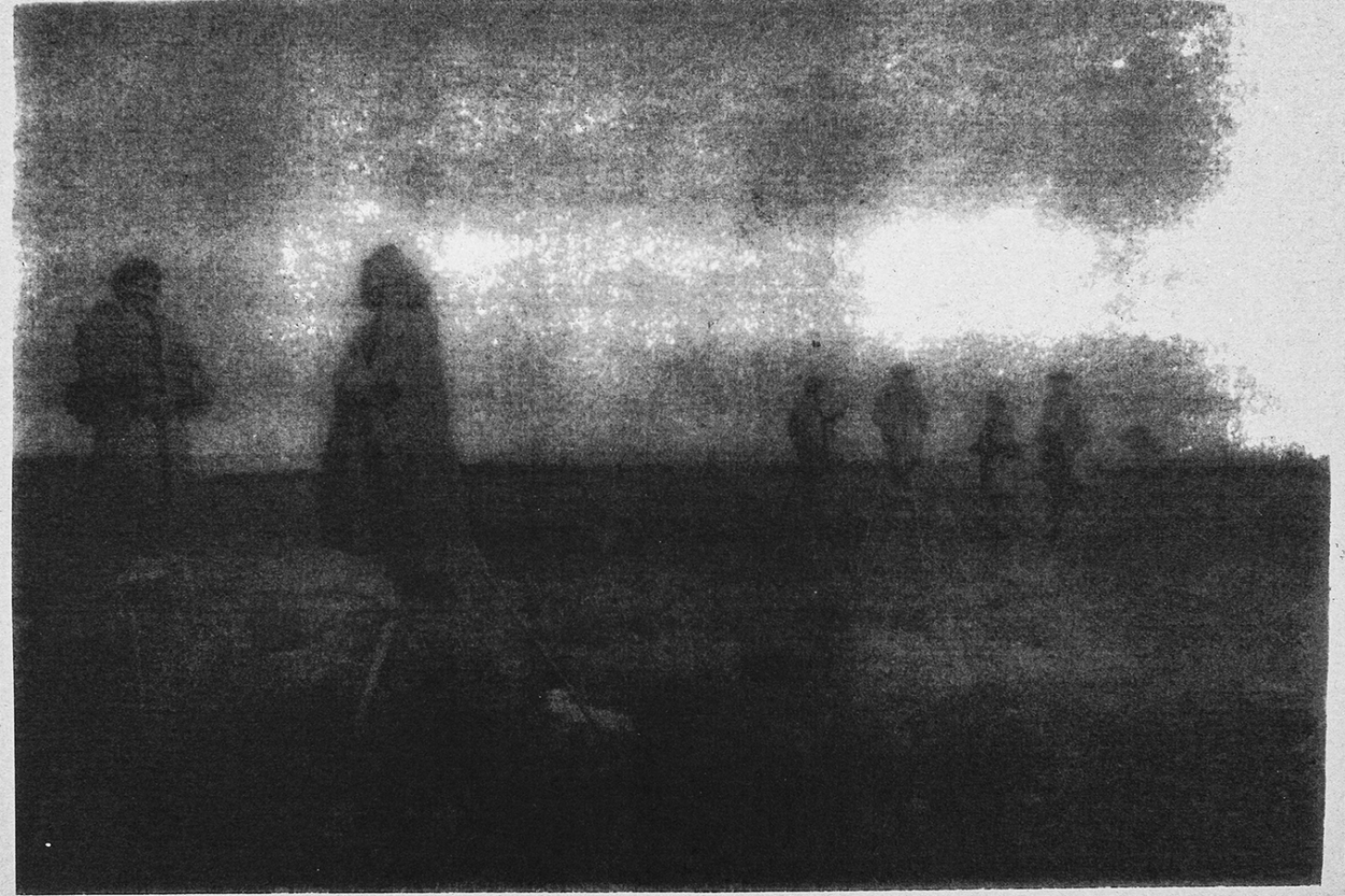 Elie Monferier s’est jeté le premier dans la bataille. Il voulait revisiter et représenter le biotope de son enfance quand il passait une bonne partie de ses vacances chez ses grands-parents à Sabres. La capture photographique ne suffisant pas à restituer des souvenirs polysensoriels, Elie Monferier souhaitait utiliser des matériaux issus de la forêt pour réaliser ses tirages.