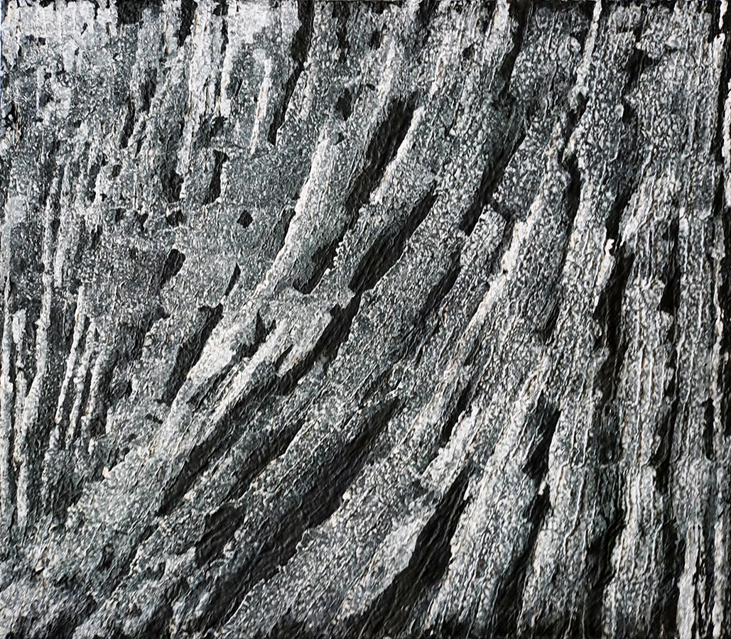 Les « papiers » font partie de la démarche. Ils sont créés dans l’atelier à Pau, à la recherche des rythmes, des matières, textures, reliefs et évènements de surface : papiers végétaux, fibres entrelacées, papiers recyclés, fragments collés, feuilles plissées, pressées, froissées, déchirées…