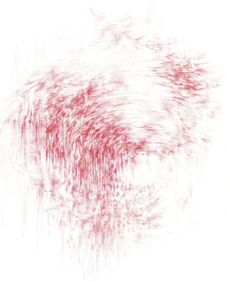 Ma gestuelle se répète, rythmée par « cet encore et encore », opérant sur l’image qui peu à peu  advient.