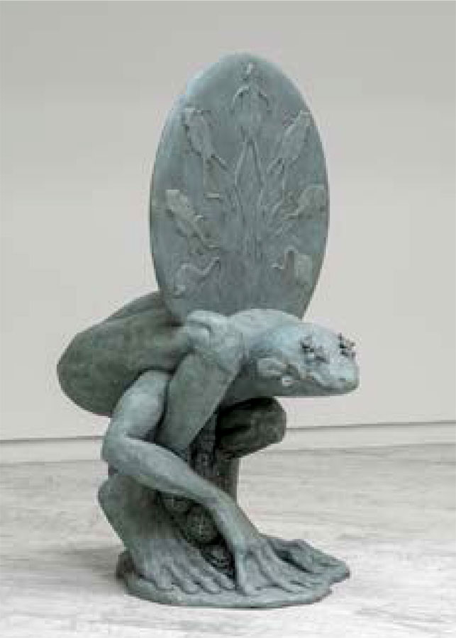 Essentiellement sculpteur, l’artiste crée un monde fictionnel densément peuplé de figures hybrides et monstrueuses où la grenouille prend une place importante. Septième plaie d’Égypte, le petit amphibien mal aimé des contes et légendes, est cependant, pour de nombreuses cultures, un symbole de chance, de fertilité et de sagesse. Une ambiguïté légendaire qui perpétue l’aura du batracien à travers les âges.