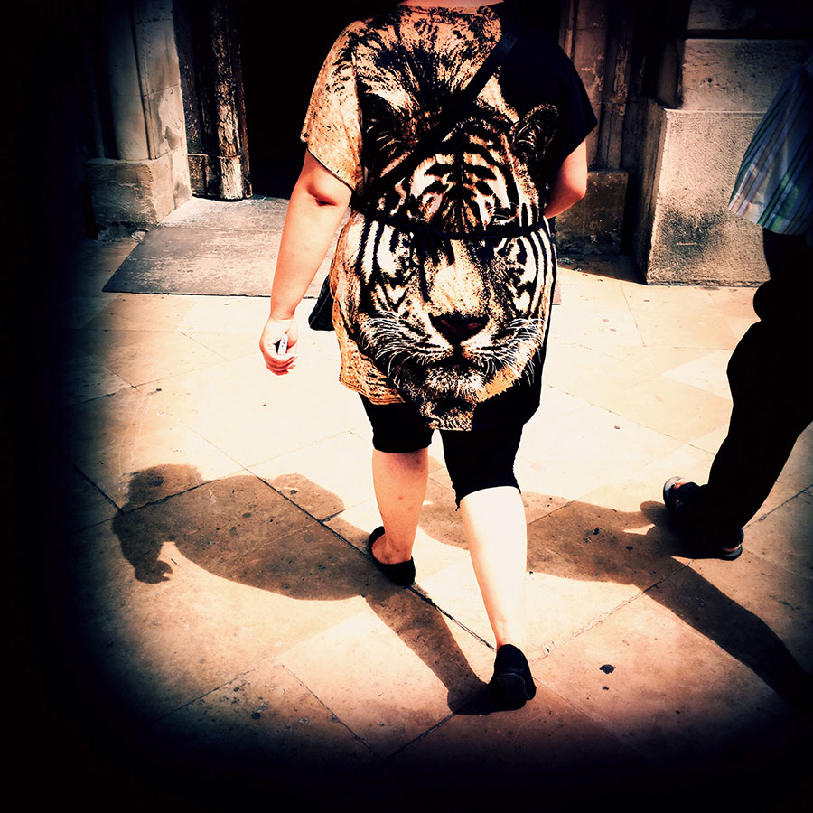 De la combinaison de bébé au sac d’une vieille dame, de la monture de lunette au sac à main, du maillot de bain aux chaussures à talons, la traque est devenue infinie. Plus je photographiais de panthères dans la ville, et plus je m’apercevais qu’il y en avait partout, aussi bien dans les quartiers populaires que dans les quartiers chics, aussi bien sur les étals des marchés que dans les vitrines de magasins de luxe. …