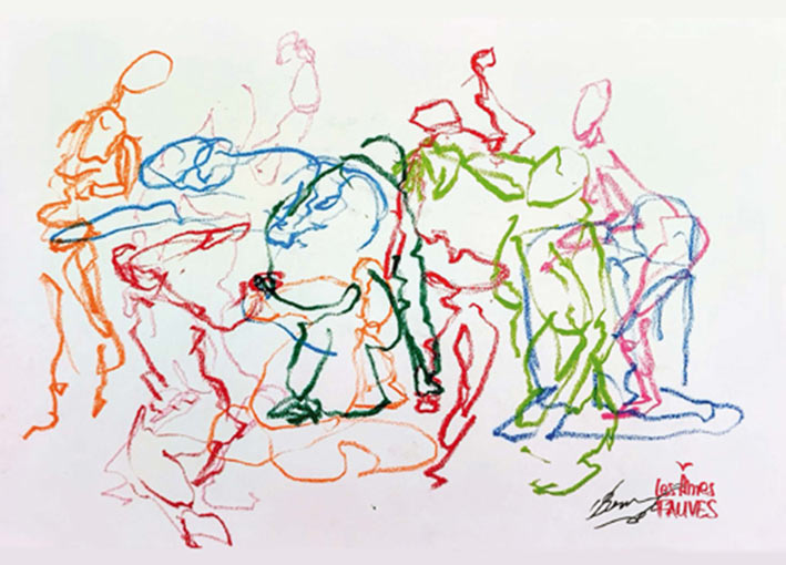 – Aux danseurs : Si tu considères ton corps comme ton pinceau, ton crayon et les espaces que tu traverses comme ta feuille, ta toile, ton support graphique alors « sache » que tu n’as pas fini de gribouiller… Danser, Dessiner et Gribouiller, un autre petit bonheur possible.