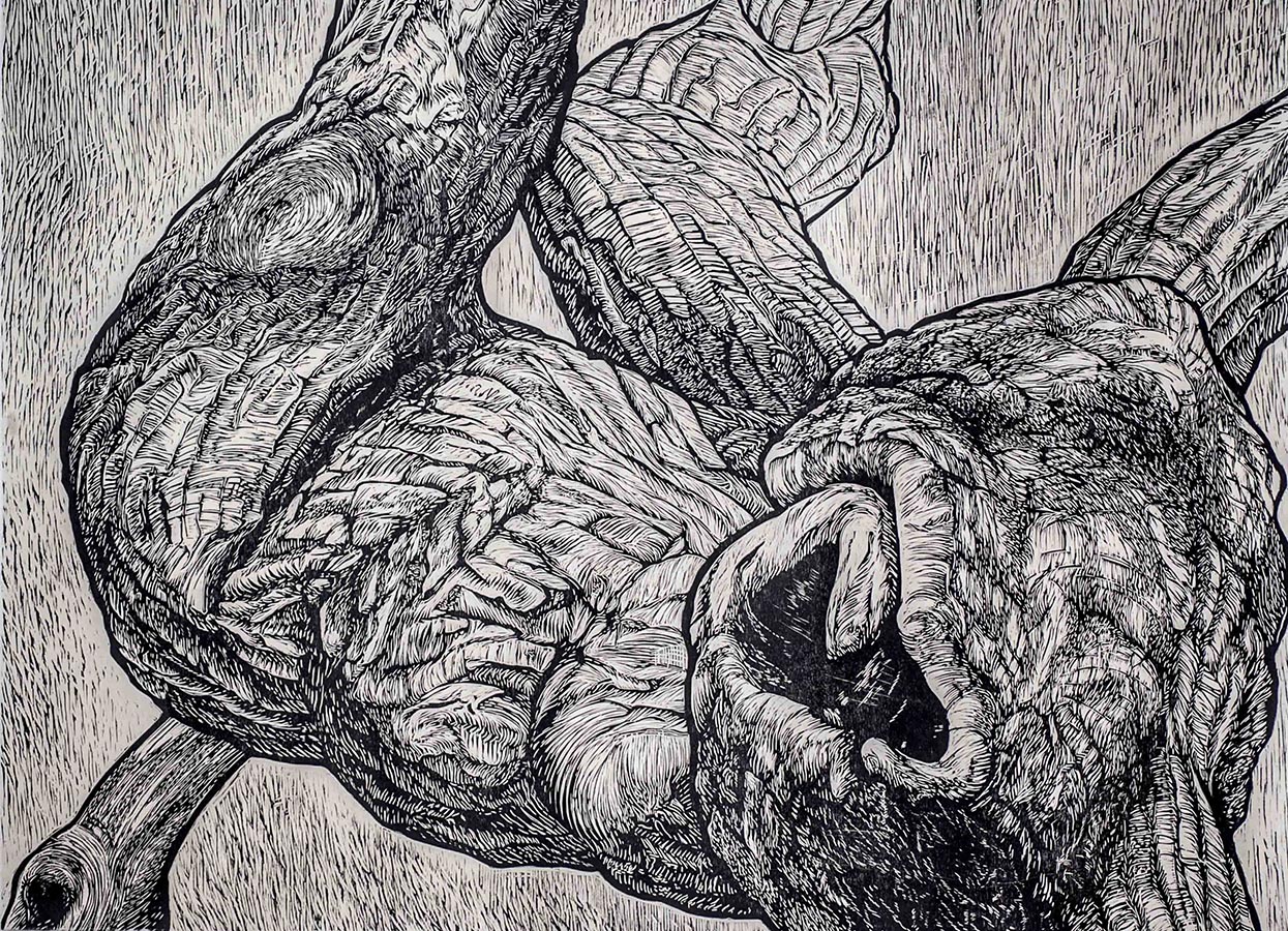 “Depuis mes débuts, je me passionne pour la représentation du monde végétal, osseux, minéral, organique au sens large. J’aime puiser mon inspiration dans les formes noueuses des troncs d’arbres, les structures des squelettes ou encore les textures des roches, en me rapprochant du sujet autant que possible, pour en dégager des paysages mystérieux.