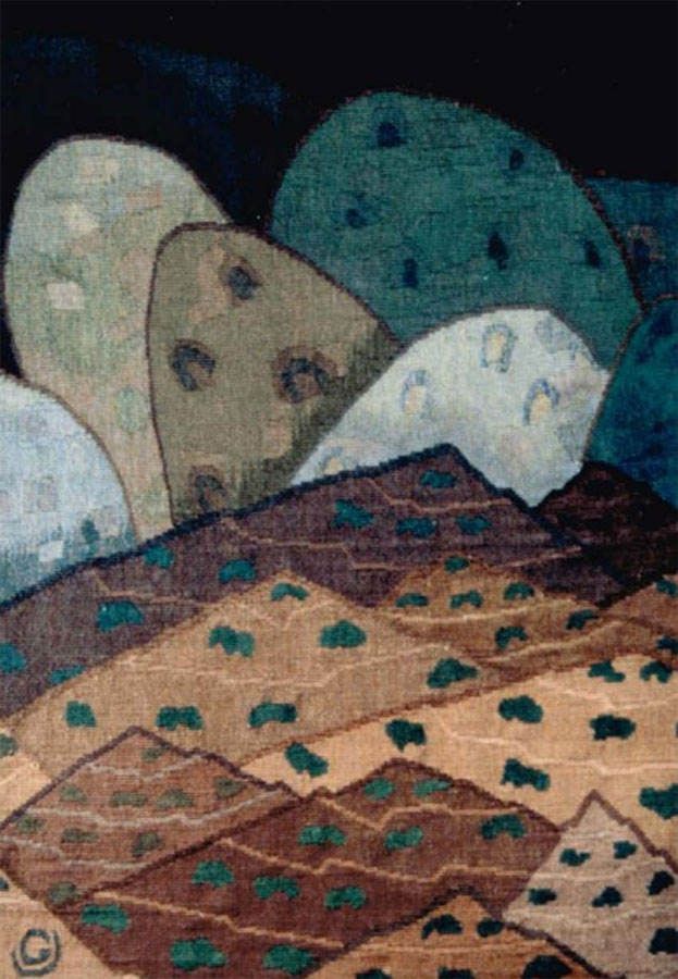 Attachée à la sobriété d’une écriture tissée à laquelle elle reste fidèle dans ses productions, l’artiste réalise une série de tapisseries dans l’esprit de dessins Coptes et Incas avant d’être tout naturellement attirée par la spontanéité du geste et des couleurs de dessins d’enfants.