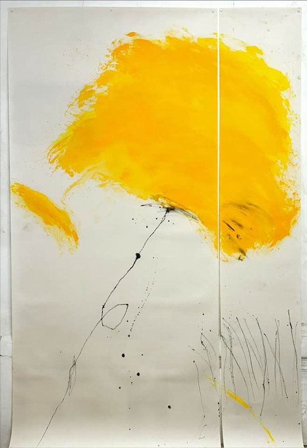 A propos de son travail pictural, panneaux peints (de trés grands formats côtoieront des petits papiers), voici ce qu’écrit le peintre cérétan : « Je n’ai pas encore croisé de papillons aujourd’hui.