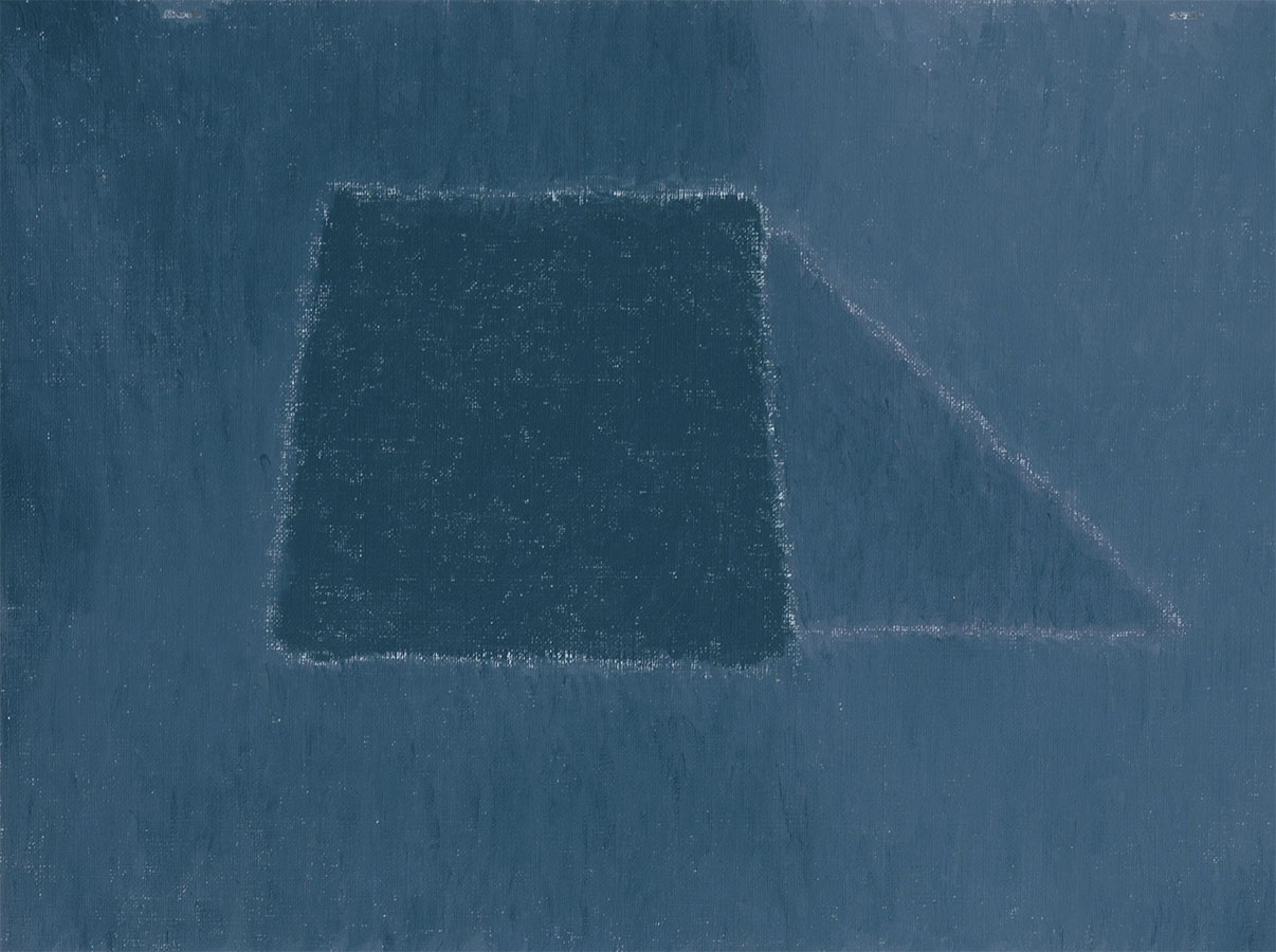 On distingue des formes, quelques-unes, peu. On ne va pas les chercher, feux sombres au cœur de la nuit formes et lumière, et silence ne rien brusquer laisser, l’œil autour – les vibrations ? nettoient le regard peu à peu petit à petit lentement des formes montent affleurent elles ne bougent pas, ou peu, mais ensemble, entre elles s’établissent une entente, un dialogue ? mais silencieux, et le silence donnant forme, et restant suspendu dans la lumière, cette lumière qui est un peu de nuit fondue prend forme et elles se détachent un peu, sortent de l’intérieur du fond tout en demeurant comme un peu soudées, et les couleurs avec : pas beaucoup, brun tourbe vert mousse gris cheminée grenat bleu, bleu gris ténèbres…