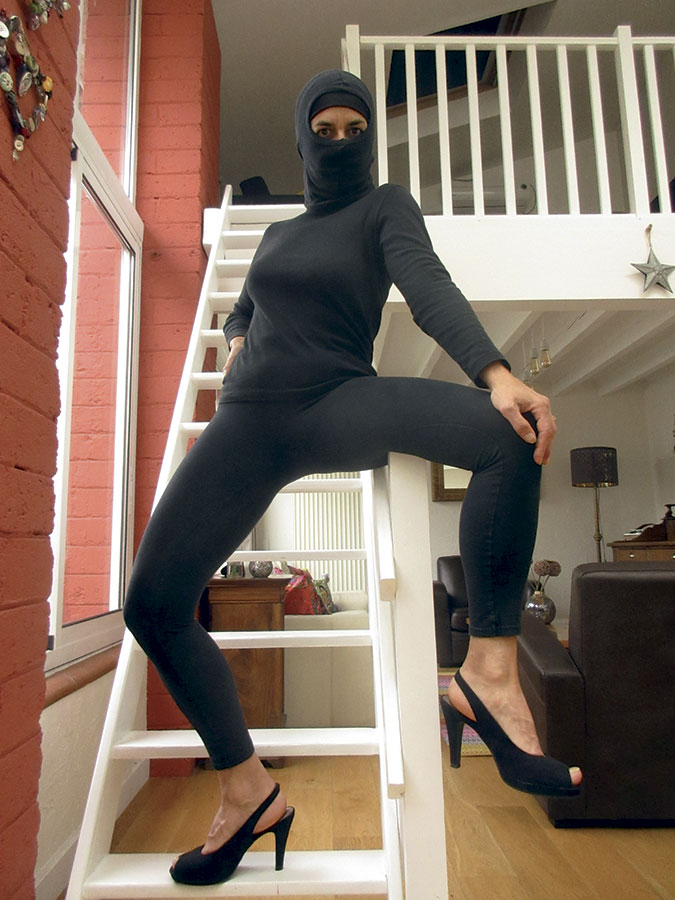 Mon corps devient un outil de production, assimilé à un métier à tisser immobile. Appuyée contre un mur, je demeure volontairement fixe pendant un temps indéterminé, offrant une présence silencieuse, presque architecturale.