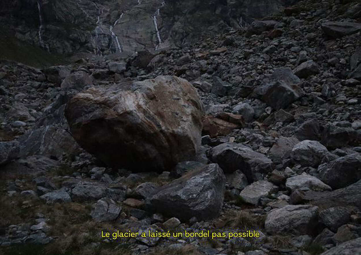 « Une randonneuse s’engage sur les parois abruptes de Pipanoushka, la montagne impossible. Résolue à grimper jusqu’au sommet, elle ne laissera ni Piero, le guide, ni sa légendaire anxiété, entraver son chemin. » - Dormir dans la mouche pendant des années – Performance sonore de Moun Bonnet, 10′