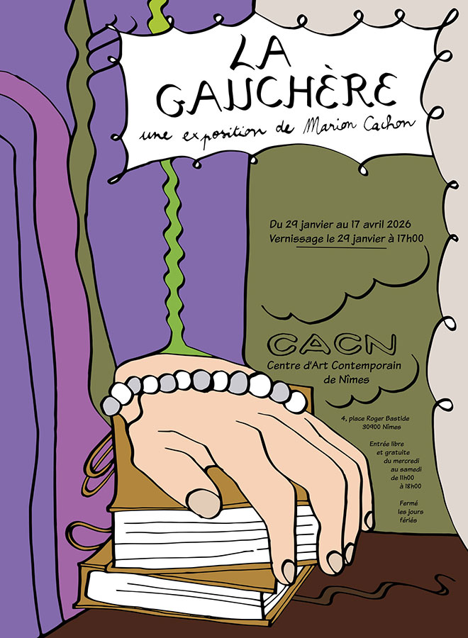 Cette exposition fait suite à un premier volet présenté à l’Artothèque de Caen du 15 novembre 2025 au 11 janvier 2026. Au CACN, en raison de la succession de petites salles, le projet adoptera les codes d’un univers domestique gauchi. En parallèle, un livre coédité par le CACN et l’Artothèque, et publiée par Tombolo Presses, rassemble le travail de recherche mené par Marion Cachon sur la gaucherie dans le design et l’histoire des représentations. Un lancement sera organisé pendant l’exposition.