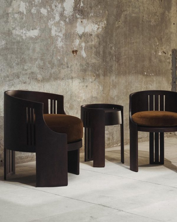Le mobilier OI de Tassiana Laurre ouvre le parcours avec des pièces où le design flirte avec la sculpture. Fabriqué à la main en bois massif, ce mobilier réinterprète l’héritage Art Déco à travers des silhouettes à la fois architecturales et sculpturales. Une sculpture fonctionnelle, où mobilier et architecture convergent dans un même élan formel.