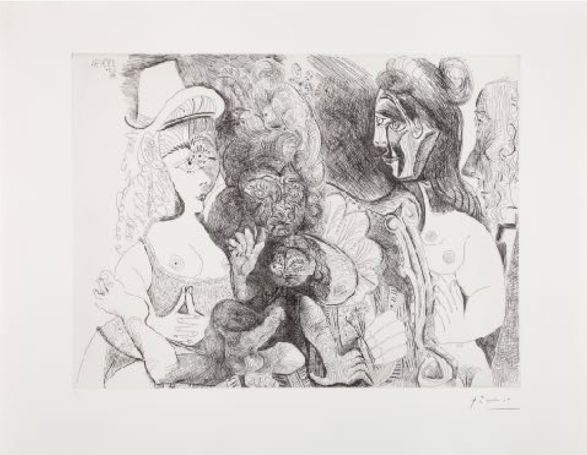 La série dite des « 156 gravures» est la dernière que grava Picasso entre 1970 et 1972, à l’âge de 90 ans.