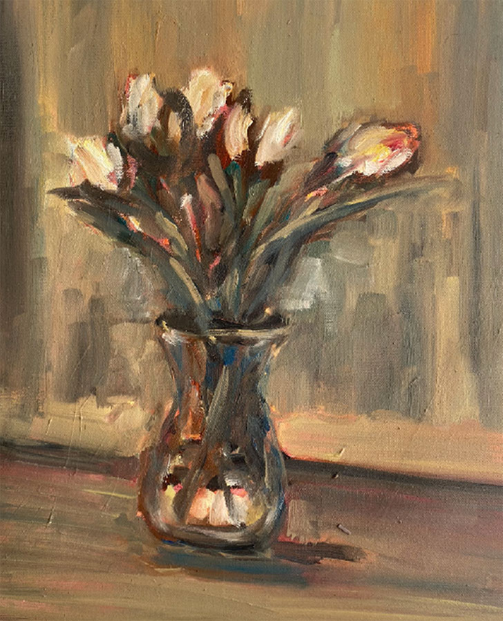 Ancrées dans la tradition du réalisme tout en restant profondément attentives à la vie contemporaine, ses peintures évoquent l’intimité, la solitude et la poésie subtile du quotidien. Visages, intérieurs et gestes fugaces deviennent des réceptacles de mémoire — suspendus dans le temps, mais indéniablement présents.