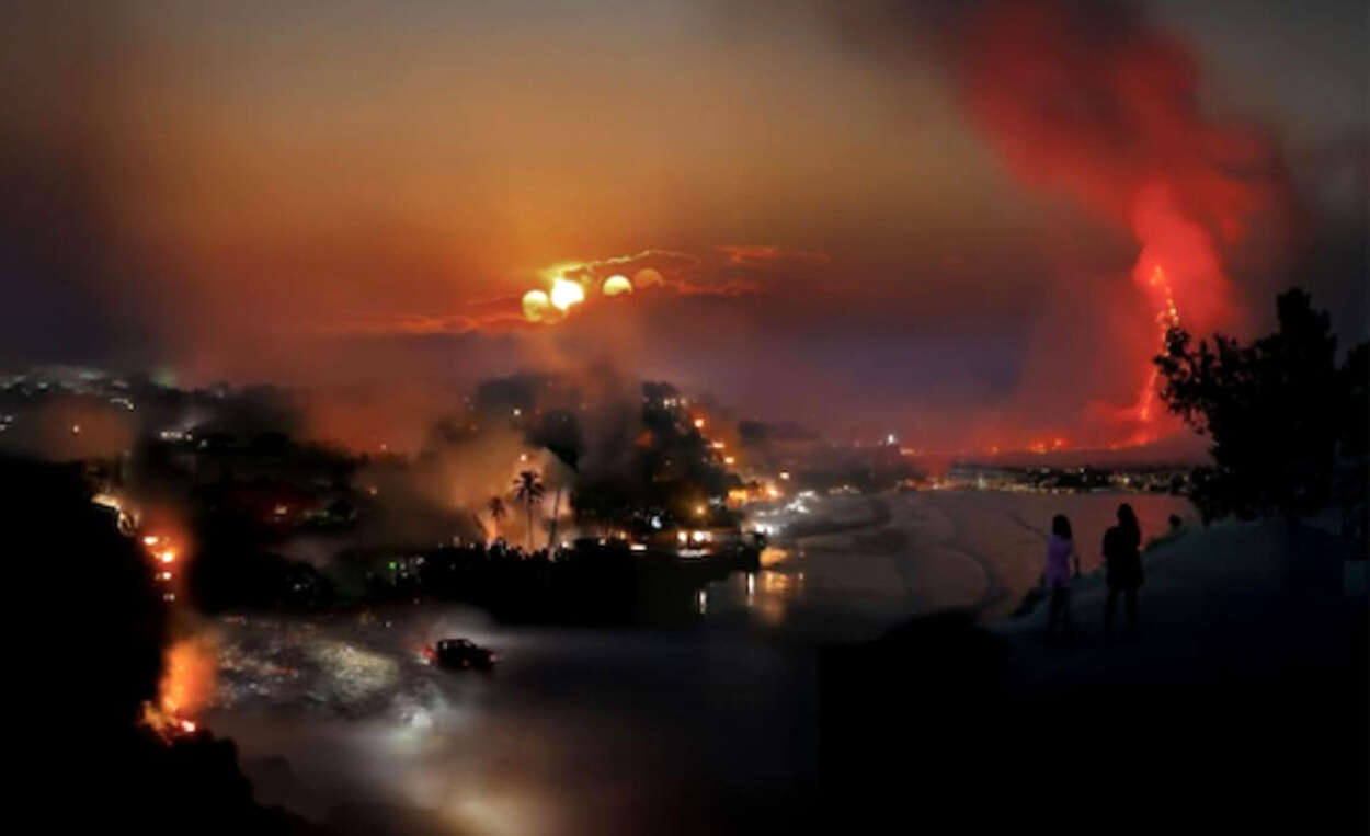 De cette mémoire de masse surgit une mosaïque d’échantillons météorologiques, de bulles algorithmiques de soleils, d’éclairs, de fumées et d’ombres qui finissent par fusionner en une ligne d’horizon instable et changeante. La neige cohabite avec le feu, le surtourisme côtoie la déforestation, les clichés de vacancier·es privilégié·es s’imbriquent et provoquent un climat de vertige.